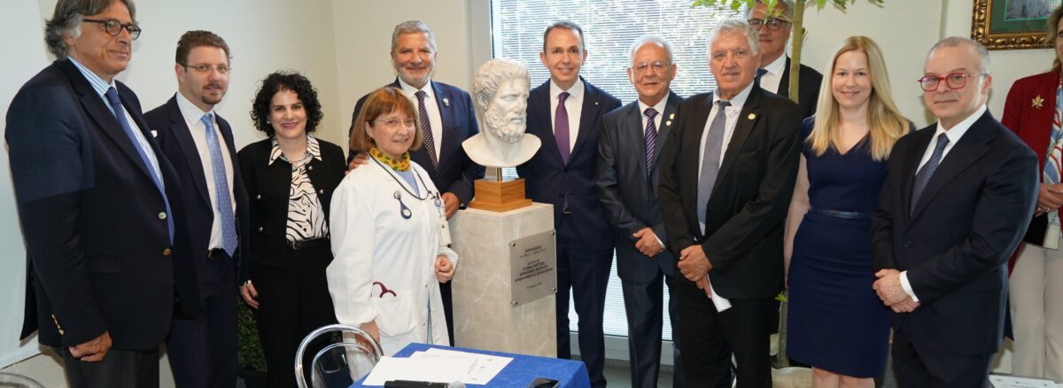 Dr. Patoulis’s presence culminated in a profoundly moving moment: the unveiling of a bust of Hippocrates at the offices of the Rome Medical Association. Among other remarks, Dr. Patoulis stated, “This symbolic act serves as a bridge between the historical legacy of Greek medical thought and the contemporary international medical community, timelessly promoting the values of scientific knowledge, ethics, and dedication to humanity. Greece, as a beacon of science and culture, continues to play an essential role on the international stage, leaving a substantive imprint. Guided by excellence, collaboration, and the universal values of Hippocrates, we unite nations, scientists, and cultures in joint actions for the benefit of humanity.”